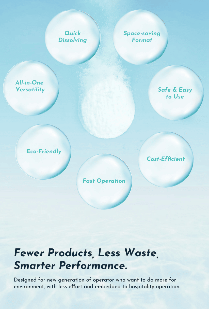 CINKLIN Cleansing Tablet is the all-in-one cleansing solutions, replace clutter and confusion with clarity and control. One tab, every surface, every team.
